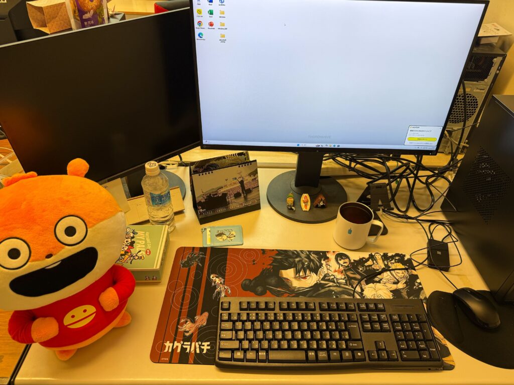 Windowsが6台,Macが1台あります.そのうち,Windows3台はメモリがなんと64GBもあります.これは,大学の共用のPCよりもハイスペックです.私の研究は膨大な計算を伴いますが,このPCのおかげで,難なく計算を行うことができています.特に席は決まっていませんが,研究室に高頻度で来る人は,机に私物を置いたりして,陣取っています.私はやる気を出すために色々持ち込んだ結果,とてもにぎやかになりました.